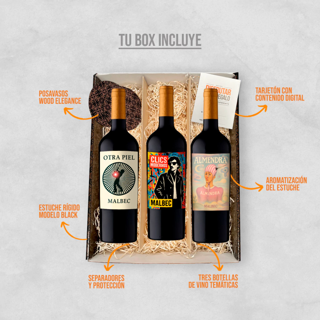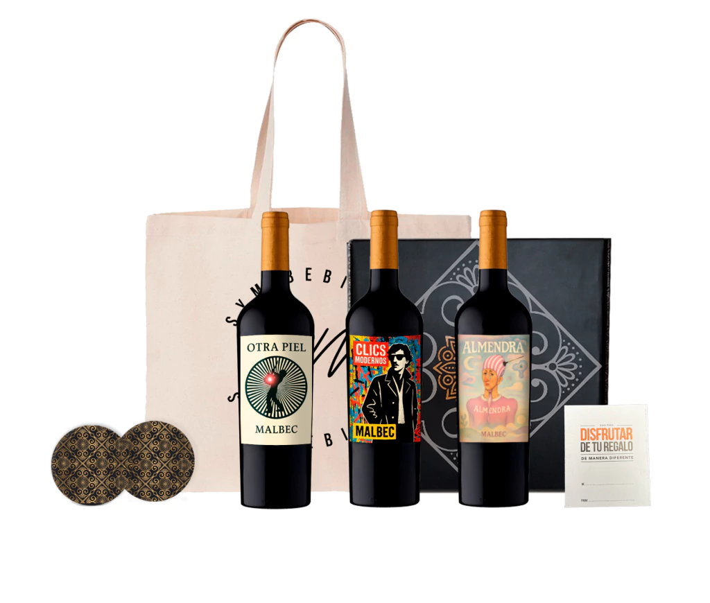 3X-Botellas de vino Malbec con diseño Charly García - Cerati - Spinetta