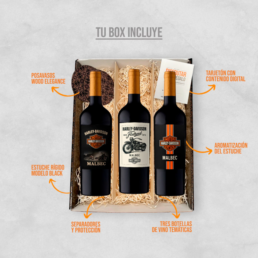 3X-Botellas de vino Malbec con diseño Harley Davidson