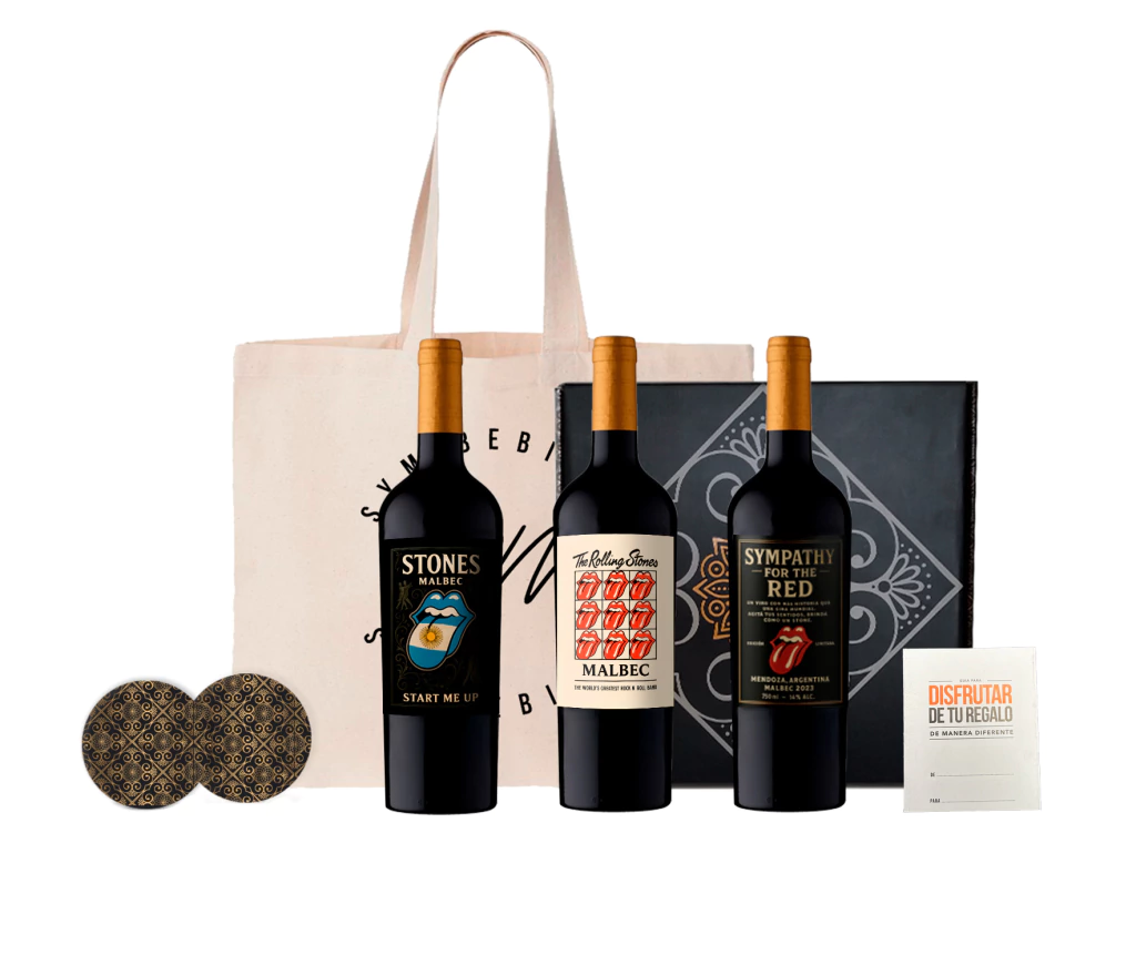 3X-Botellas de vino Malbec con diseño The Rolling Stones