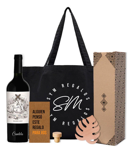 1X-Botella de vino Cordero con piel de lobo [1 palabra/nombre o iniciales del homenajeado].