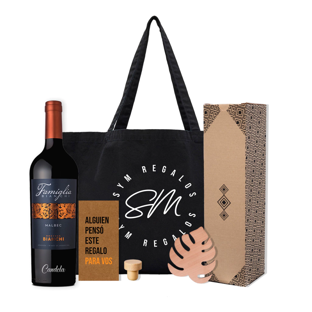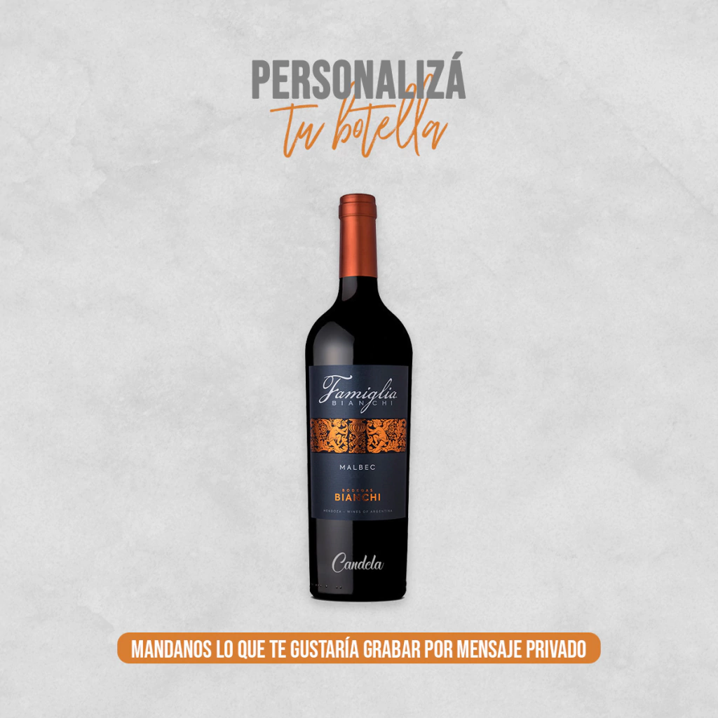 1X-Botella de vino Famiglia Bianchi malbec [1 palabra/nombre o iniciales del homenajeado].