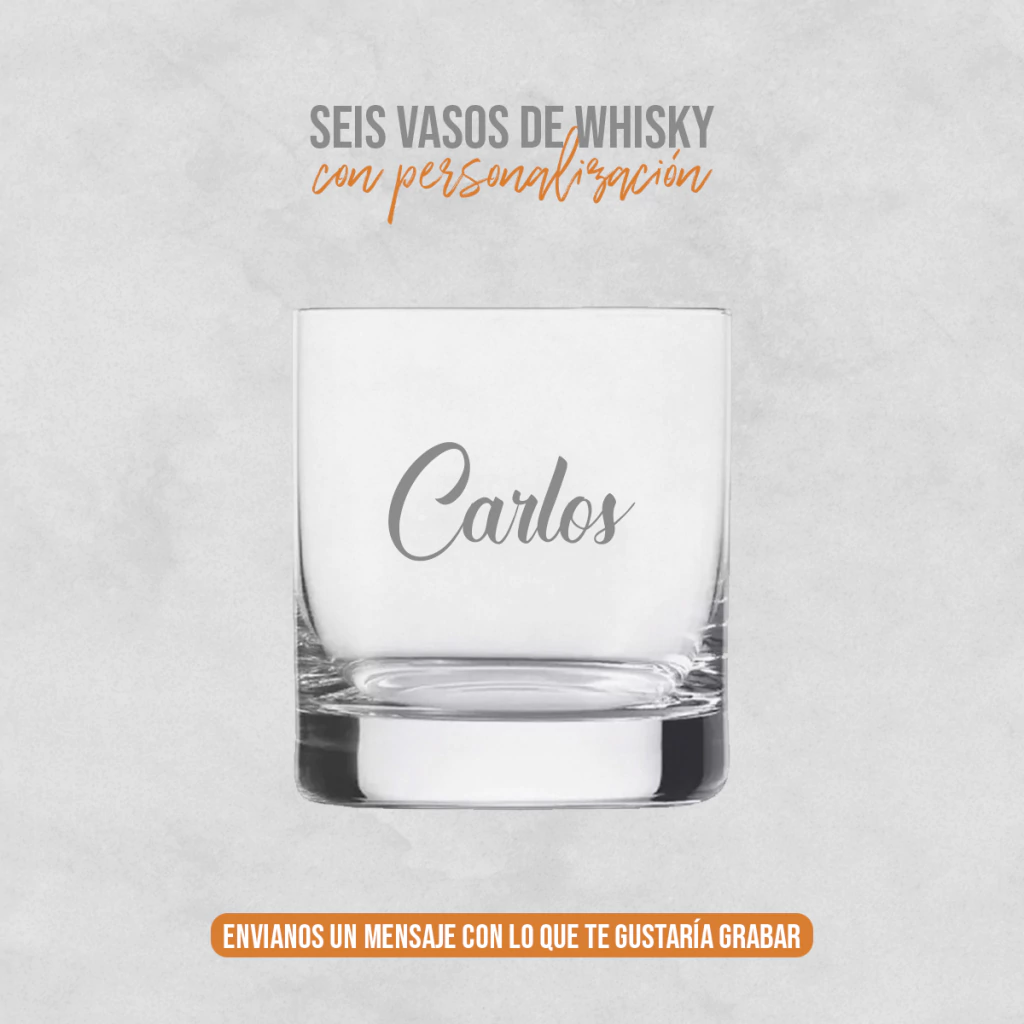 6X-Vasos whiskeros + Personalización de los vasos [1 PALABRA/NOMBRE O INICIALES HOMENAJEADO]