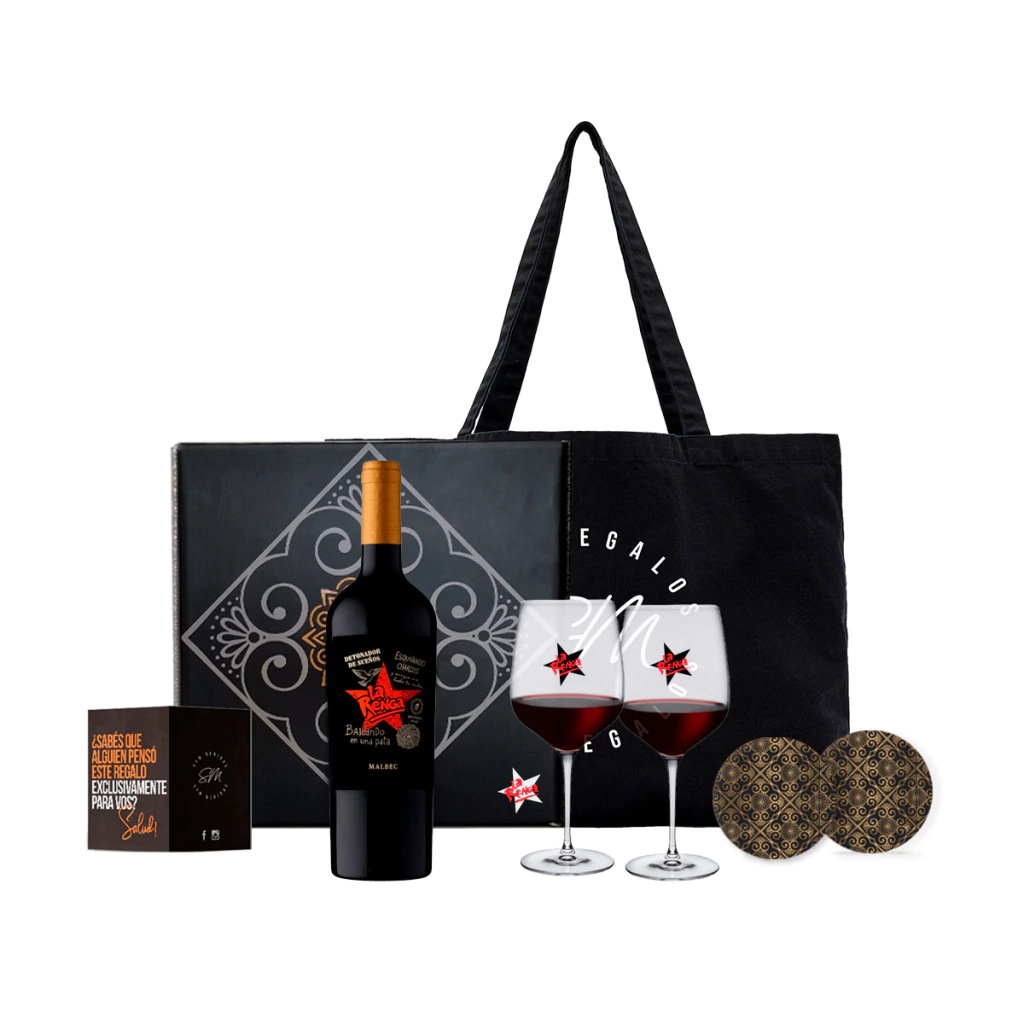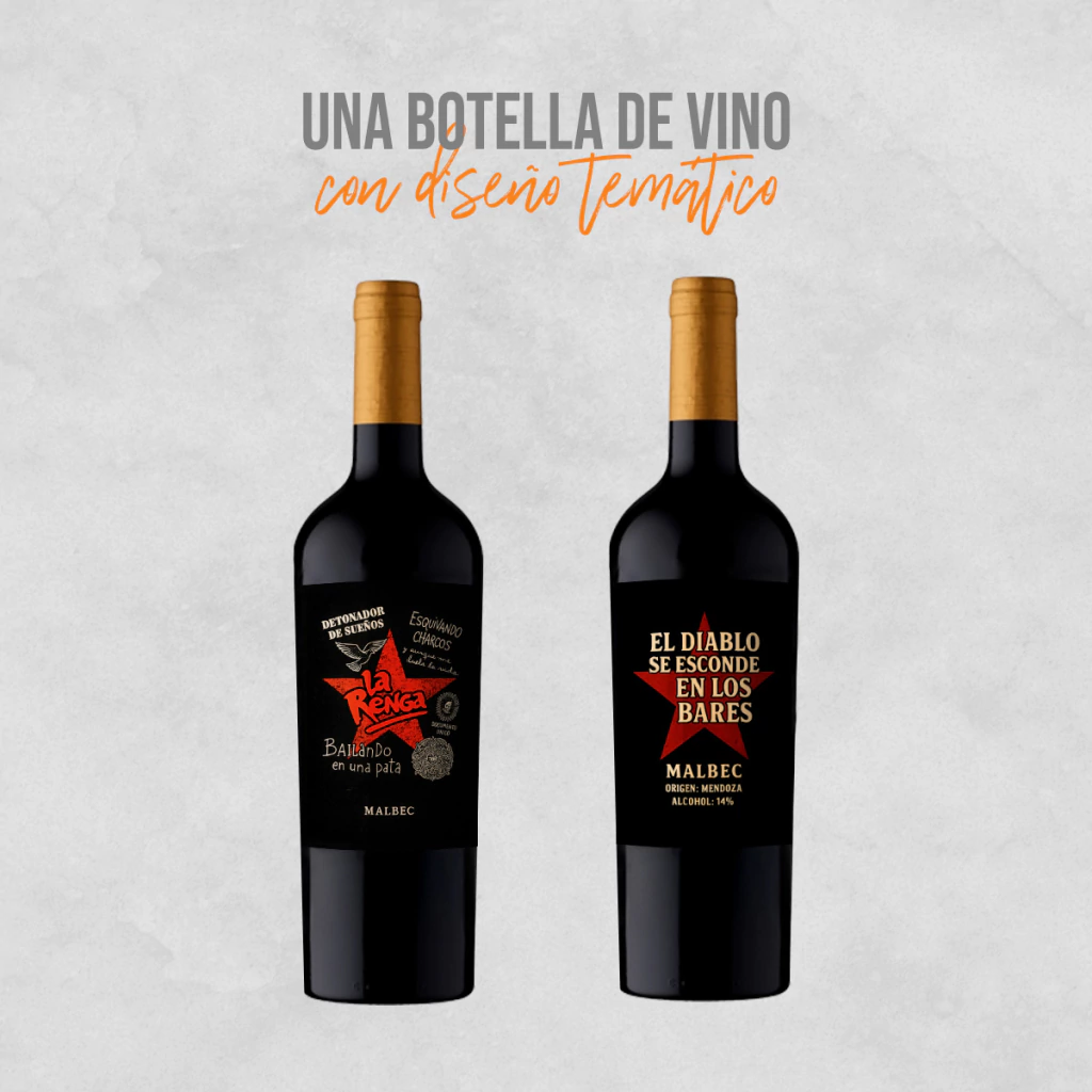1X-Botella de vino malbec con diseño La Renga