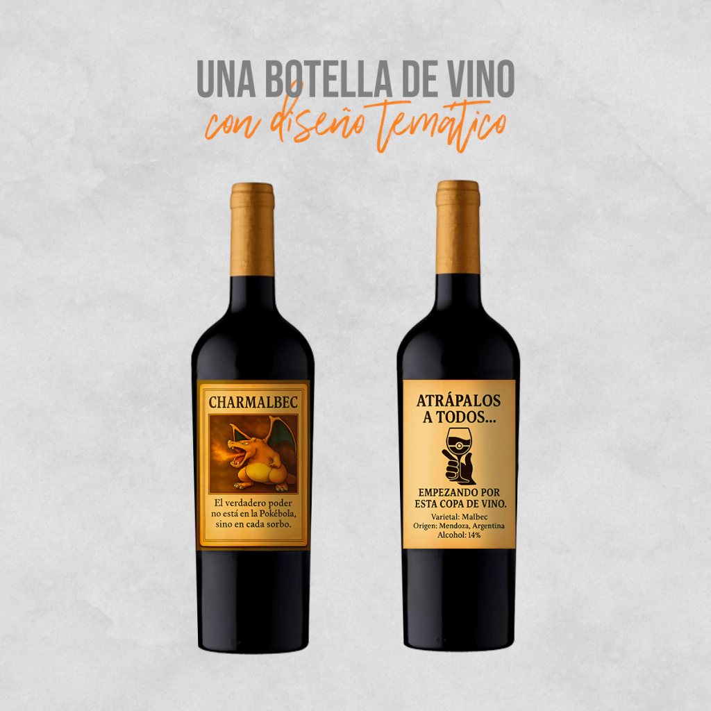 1X-Botella de vino malbec con diseño Pokemon