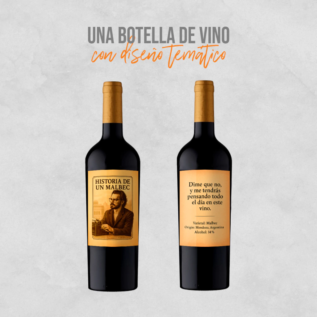 1X-Botella de vino malbec con diseño Ricardo Arjona